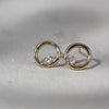 ゴールデンサークルが印象的なプチピアス。 ダイヤモンドを1石加えることで、クラス感をプラスして。 さらっと着けやすく、引っ掛かりのないフラットスタッドタイプで、デイリーに愛せるジュエリーに。