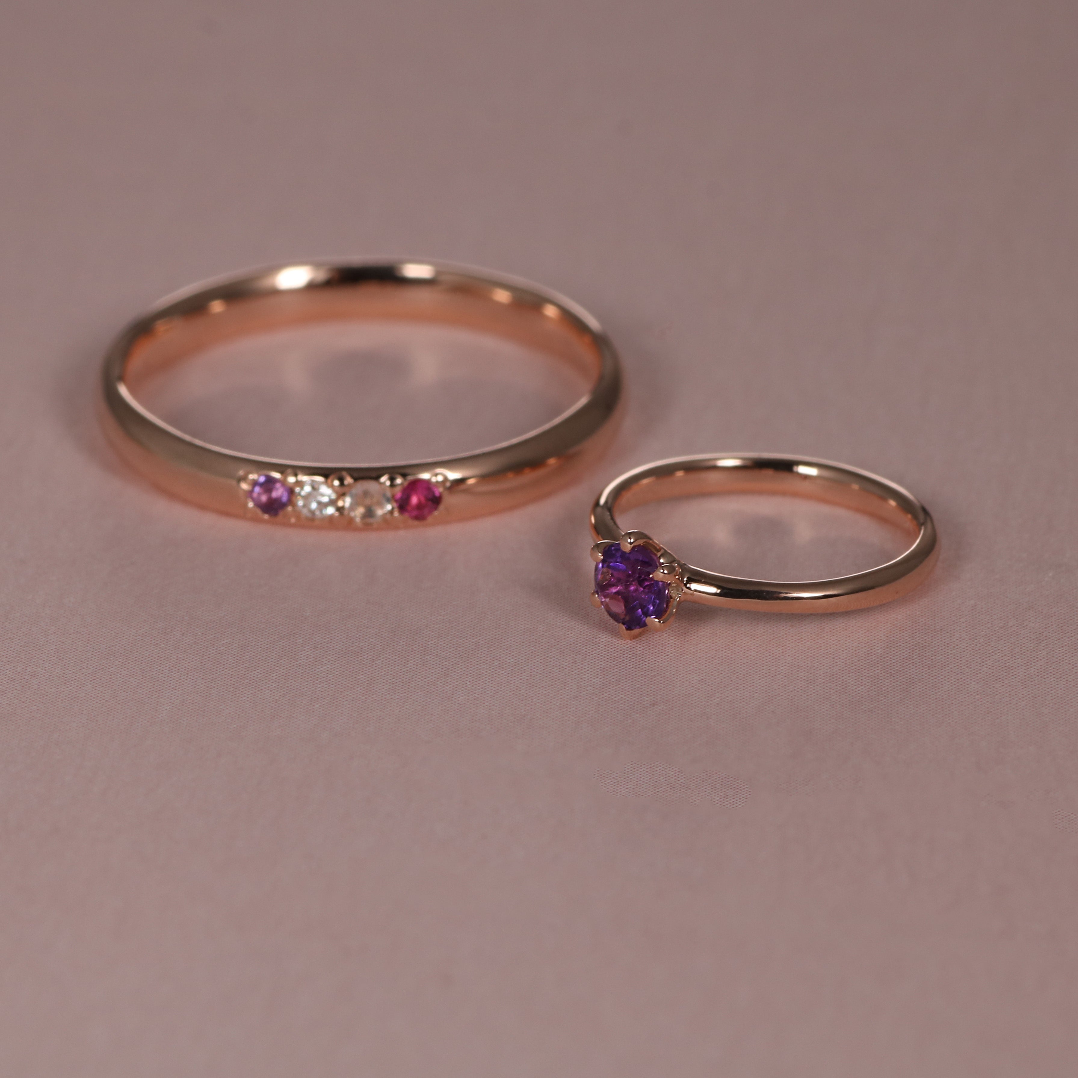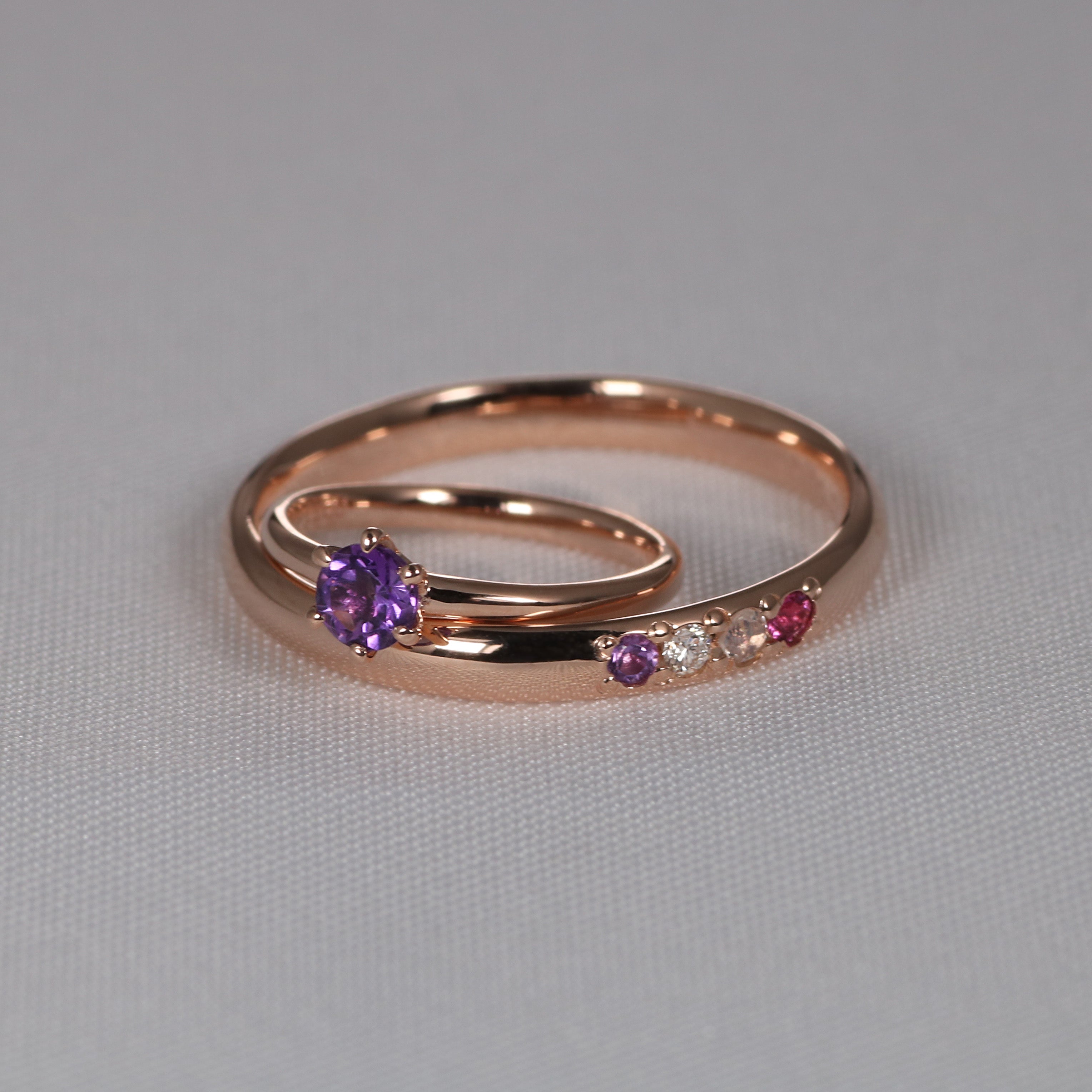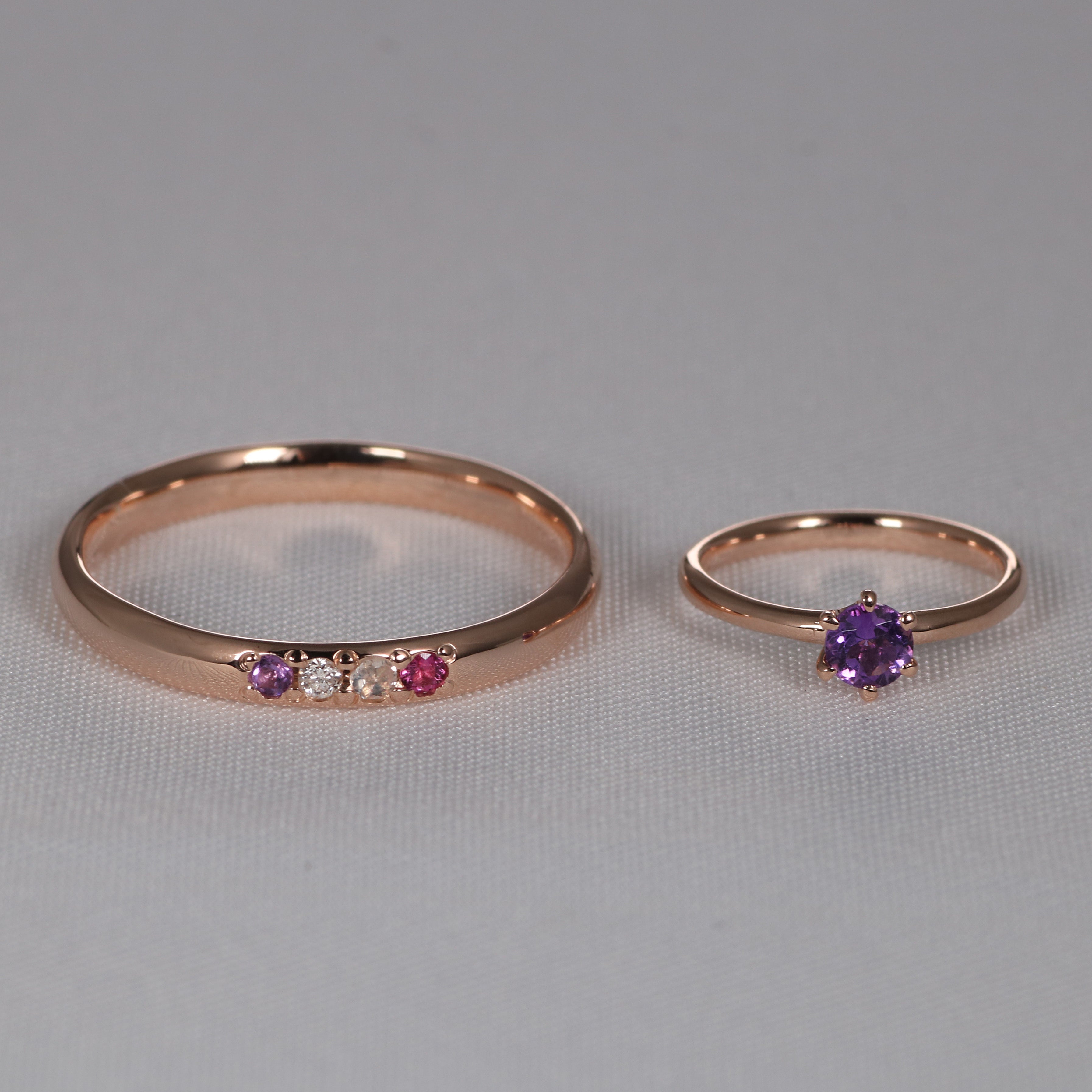 アメシスト・ダイヤモンド・ムーンストーン・ルビーの4石をセッティング。