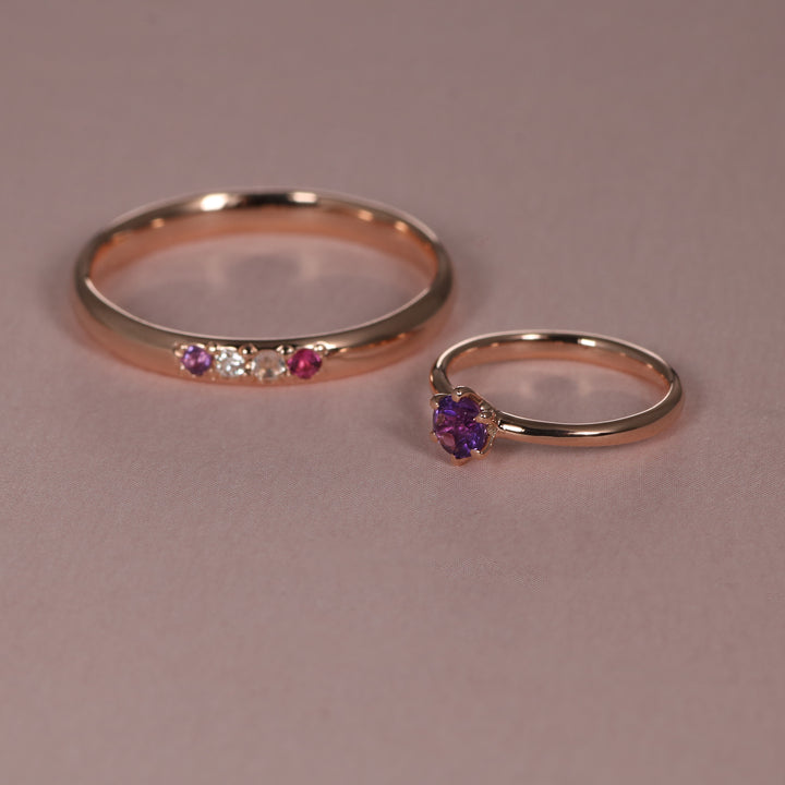 The “Baby Ring” features a single Amethyst,